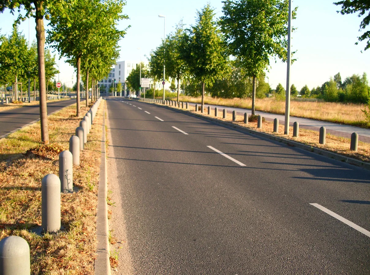 Rund pullert af grå genbrugsplast, 15 x 150 cm.