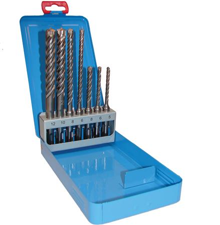 Komplet sæt med 7 stk. Thürmer SDS-plus hammerbor med 4 skær, leveret i praktisk kassette. Ideelt til boreopgaver i beton og murværk.