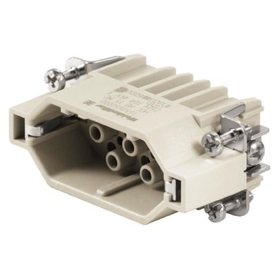 Denne HAN-indsats er designet til industrielle stikforbindelser og sikrer en pålidelig forbindelse. Indsatsen består af et kontaktelement og et isolerende legeme, der tilsammen udgør en robust løsning.