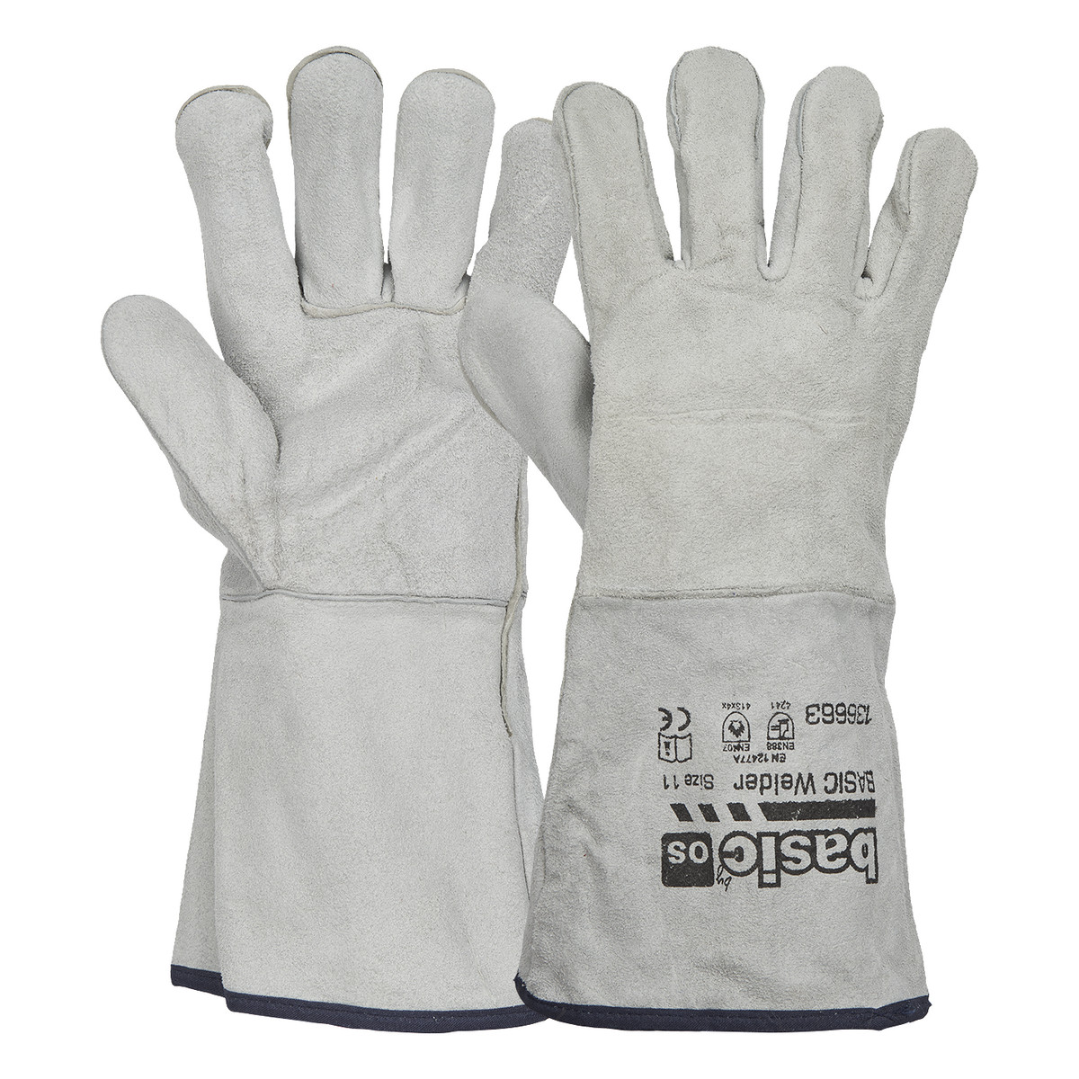 Svejsehandske i kraftig oksespalt med lang krave. Helforet med bomuldsjersey i hånden og glat bomuld i kraven. EN god og slidstærk svejsehandske.