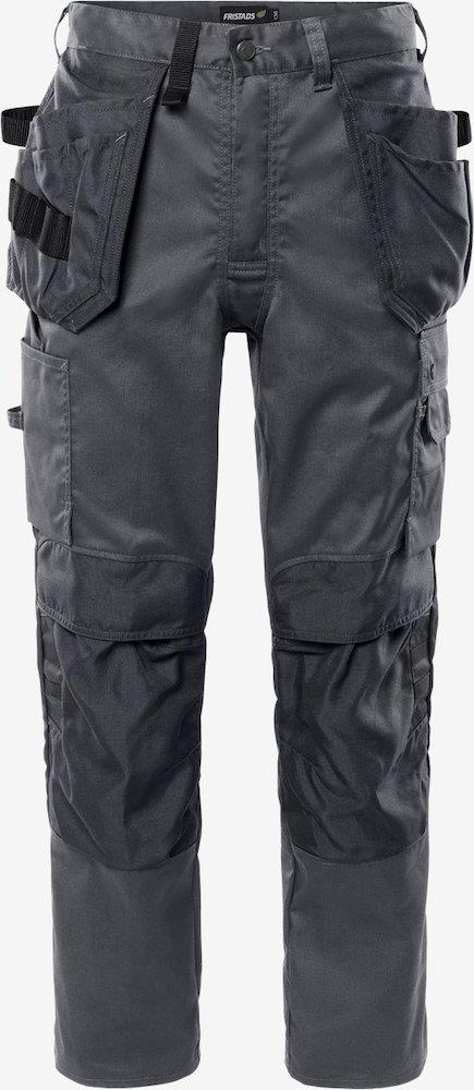 Fuldt udstyrede håndværkerbukser i slidstærkt materiale med mekanisk stretch for optimal bevægelsesfrihed. Fremstillet af genanvendt polyester og bomuld.