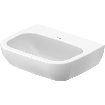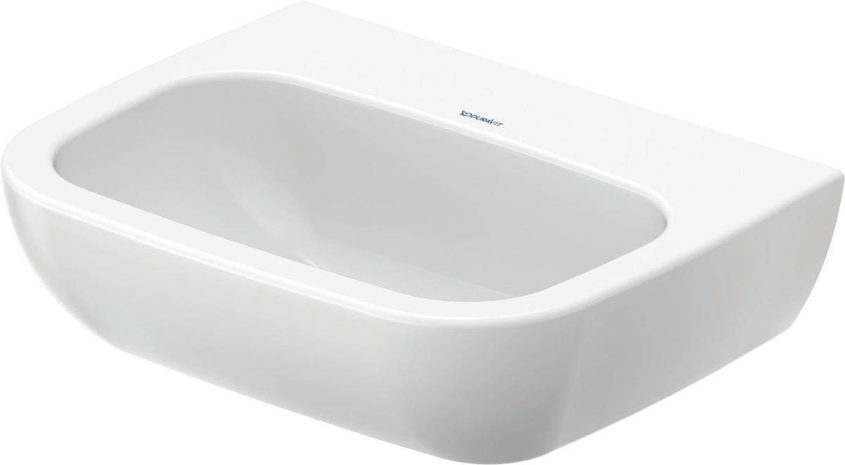 Duravit D-Code halvrund håndvask, 550 x 430 mm, hvid højglans. Med hanehul og uden overløb. Glaseret på undersiden.