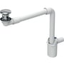 Geberit håndvaskafløb i rumsparende model, med udvendige ventilpropper med trykaktivering. Bundventilen har en diameter på 32 mm og er blankforkromet. Med vandlås.