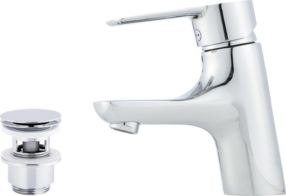 Mora Cera B5 etgrebsarmatur i krom med push-open bundventil. Vandbesparende funktioner og fleksible tilslutningsslanger.