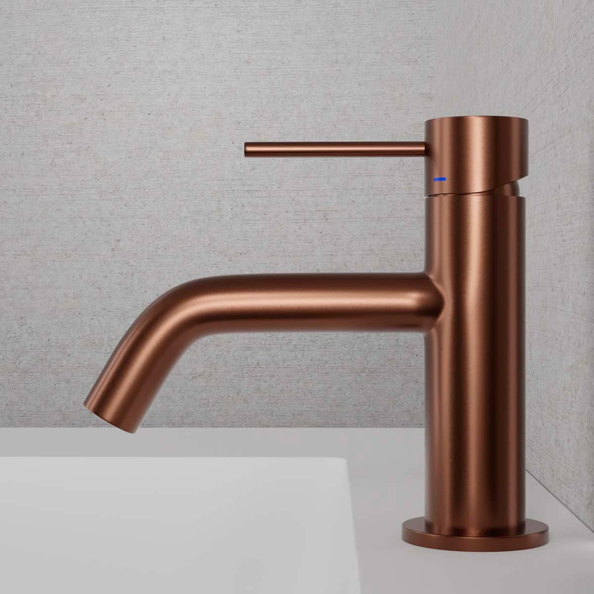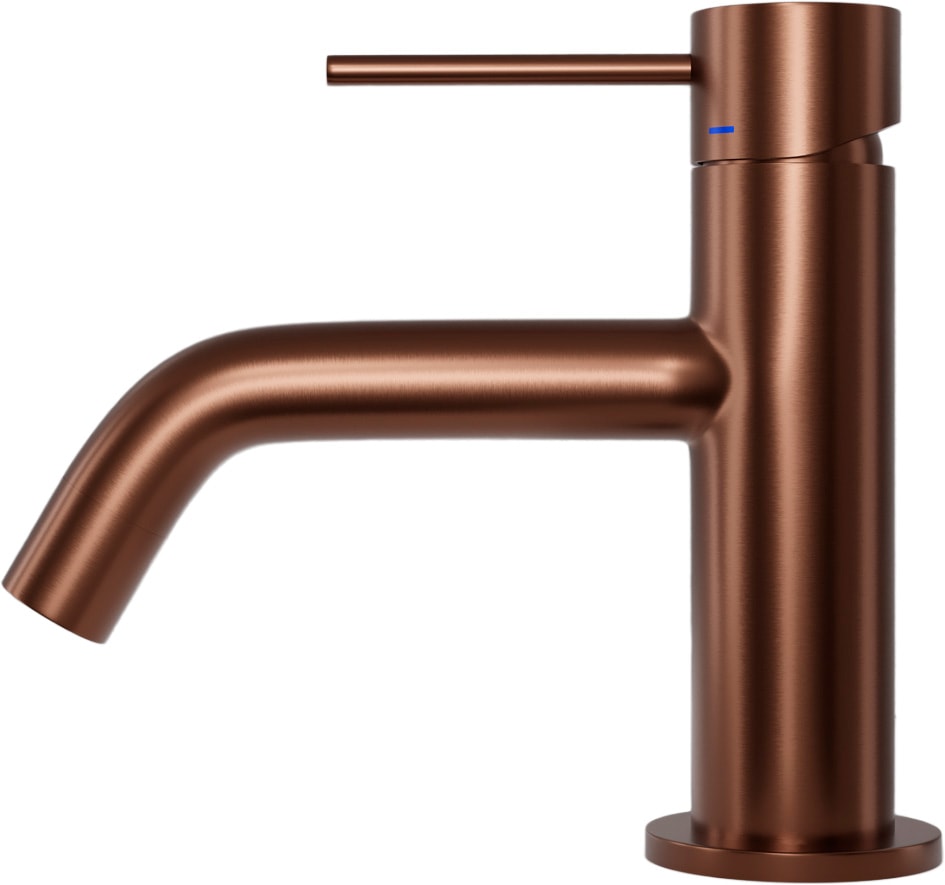 Elegant 1-grebs håndvaskbatteri i rustfrit stål med kobberfinish. Ideel til bord- eller vaskmontering.