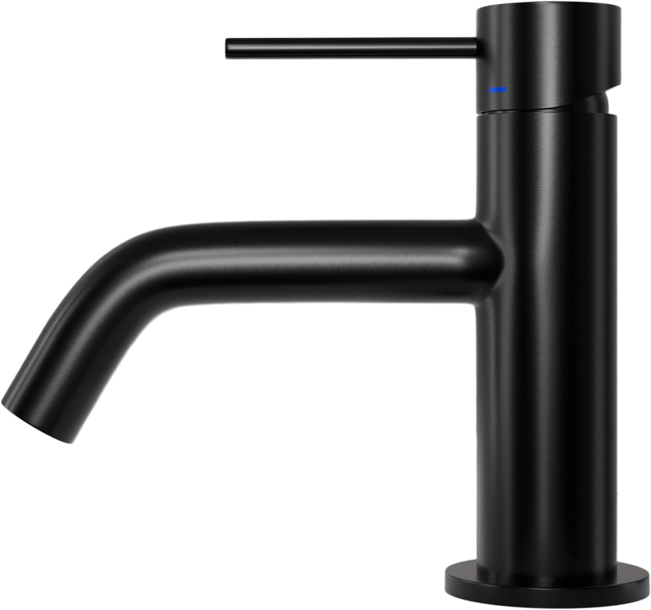 Stilfuldt 1-grebs håndvaskbatteri i rustfrit stål med en elegant sort finish. Perfekt til bord- eller vaskmontering.