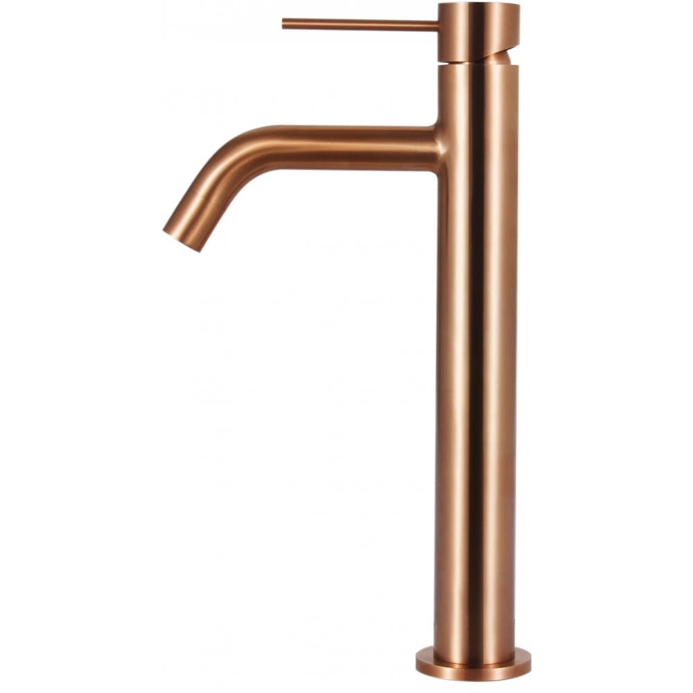 Elegance møder funktionalitet med Scandtap Steel Voyage High Amber håndvaskbatteri i rustfrit stål med kobberfinish. 1-grebs betjening og 7.8 l/min forbrug.