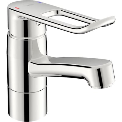 Dette armatur fra Pressalit kombinerer funktionalitet med et stilrent design. Med sin lange svingtud og bøjlegreb er det nemt at betjene og giver god fleksibilitet ved vasken.
