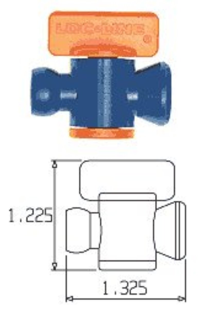Denne Loc-Line hane er designet til in-line installationer og har en 1/4" tilslutning. Den er ideel til præcis kontrol af væskestrøm i forskellige applikationer.