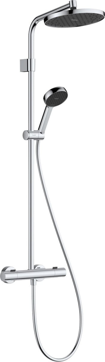 Dette komplette brusesystem fra hansgrohe sikrer en behagelig og vandbesparende bruseoplevelse. Systemet inkluderer en stor hovedbruser, en praktisk håndbruser, en præcis termostat og en justerbar bruserstang.