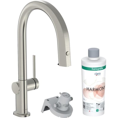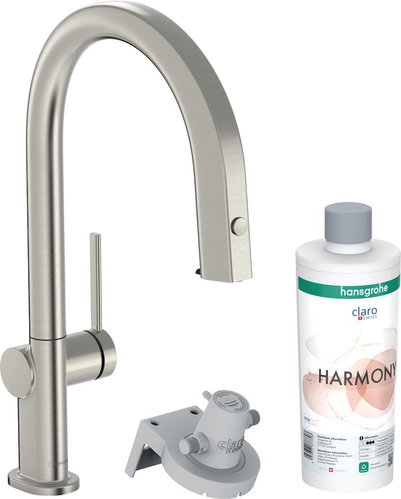 hansgrohe køkkenarmatur med vandfilter (startsæt). Aqittura M91 køkkenarmatur FilterSystem 210 i mat sort med rustfrit stål finish og udtrækstud (startsæt) er den ideelle løsning til alle, der har brug for filtreret vand fra deres køkkenarmatur, som enten er mineraliseret eller har mindre kalk.