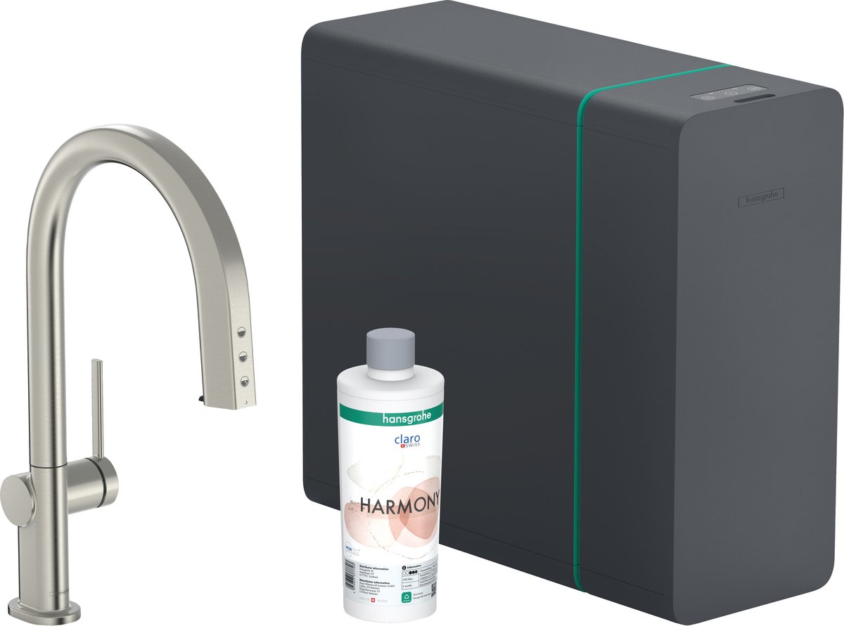 Dette køkkenarmatur fra Hansgrohe er den ideelle løsning til dig, der ønsker filtreret og potentielt mineraliseret vand direkte fra hanen. Systemet renser drikkevandet og bidrager til velvære i hverdagen. Med et enkelt tryk på en knap får du renset postevand via en separat tud.