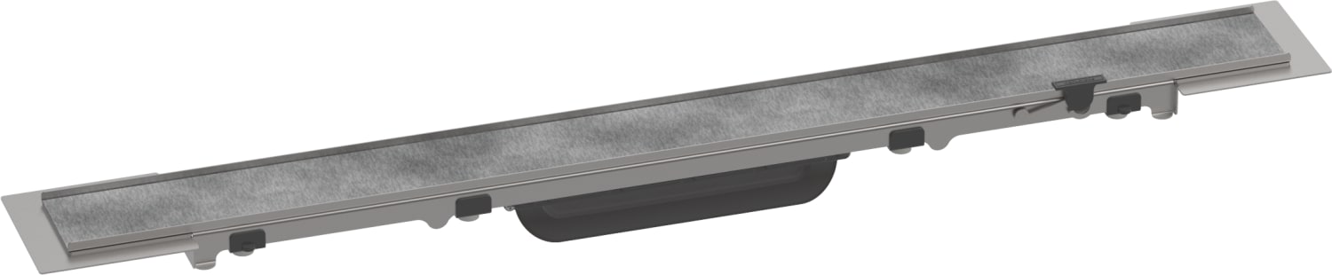 Hansgrohe afløbsrende med flisebar rist, integreret værktøj og Dryphon. Rammeløst design og højdejusterbar. Kan afkortes til 600 mm. Afløbseffekt op til 60 l/min.