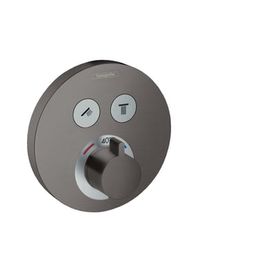 Hansgrohe ShowerSelect S termostatarmatur til indbygning med afspærring. 2 udtag, Select-knap, 25 l/min øvre, 23 l/min nedre udtag. Børstet sort krom.