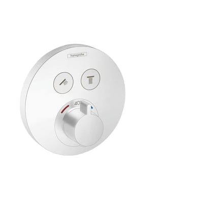 Hansgrohe ShowerSelect S termostatarmatur til indbygning. Med afspærring til 2 udtag og mat hvid finish. Mulighed for samtidig brug af flere funktioner.