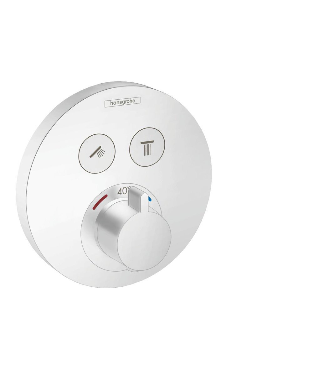Hansgrohe ShowerSelect S termostatarmatur til indbygning. Med afspærring til 2 udtag og Select-knap til nem betjening.