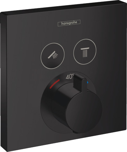Hansgrohe ShowerSelect termostatarmatur til indbygning med afspærring til 2 udtag. Nem betjening med Select-knap.