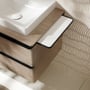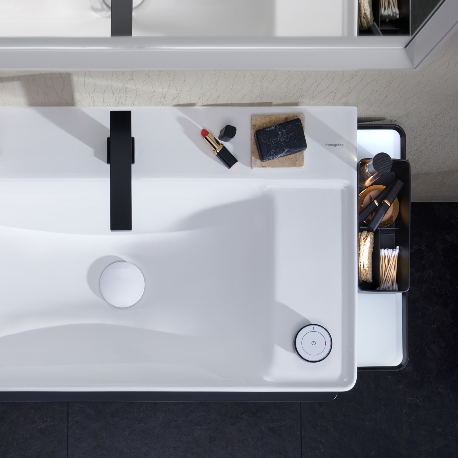 Elegant og praktisk hylde fra Hansgrohe i mat sort. Perfekt til Xelu vaskeskabe. Nem at montere med skjult fastgørelse og inkluderet befæstelsesmateriale.
