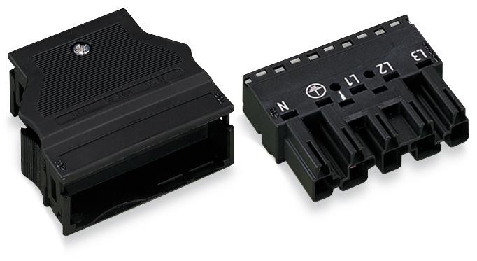 5-polet hanstik med kappe, hvid, til 2 ledere fra Wago.