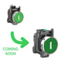 Harmony XB4BA33115 er en komplet trykknap i metal, designet til pålidelig og robust betjening. Den har fjeder-retur og en plan trykflade i grøn farve med et hvidt 'I' markeret.