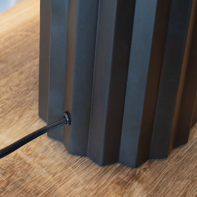 Elegant Hashira bordlampe i sort og råhvidt design. Perfekt til indendørs brug.