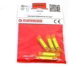 Isoleret rund forlængermuffe KA1504HO-PB fra Abiko. Til 0,5-1,5mm² Cu-leder. Materiale: Messing/Cu, Cu/Sn, plast PA. Isoleringfarve: Rød.