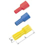 Helisoleret spademuffe KA1503FLSF5-PB fra ABIKO. Materiale: Messing/Cu, Cu/Sn, plast PA. Isolering: Rød. Til 0,5-1,5mm2 Cu-leder. Til spadestik: 2,8x0,5.