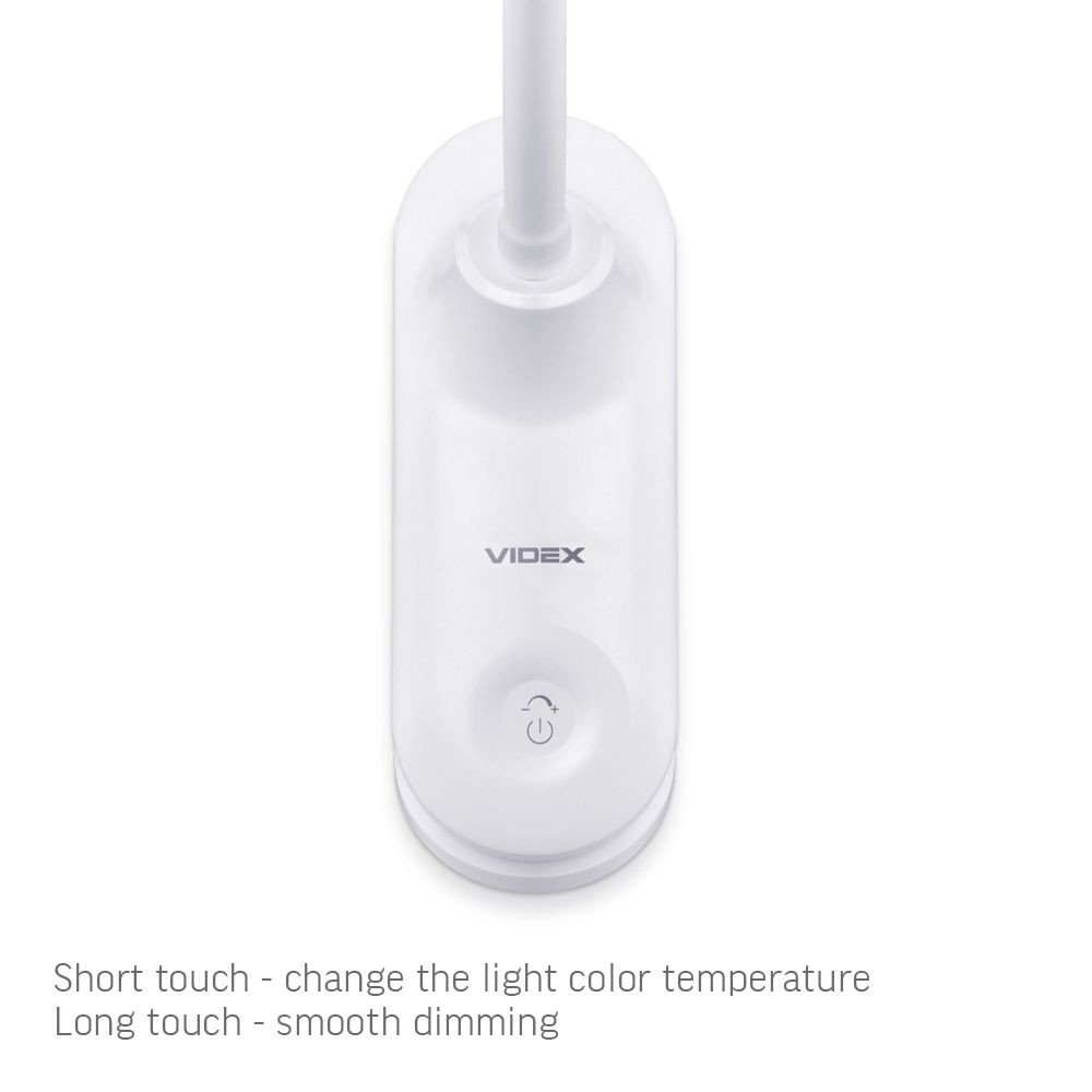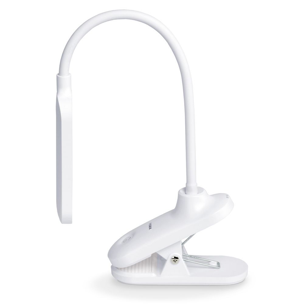 Dæmpbar LED skrivebordslampe i hvid plastik. Med indbygget dæmper og neutral lyskulør (4000K). IP20-klassificeret.