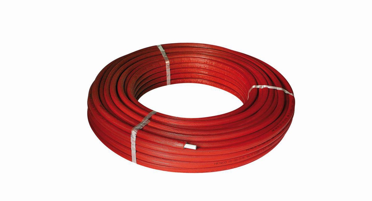 Flerlagsrør med termisk isolering af ekstruderet PE-skum med lukket celle. Robust ydre lag beskytter mod skader.