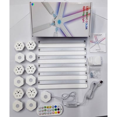 Hexa-Light RGBIC sæt, 9 lysskinner, vægmonterede, Bluetooth app, USB, 8W, 5V