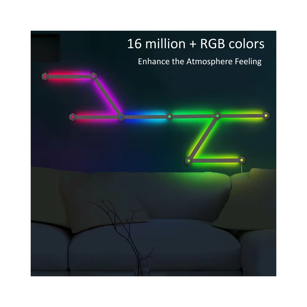 Hexa-Light RGBIC sættet giver dig mulighed for at skabe en personlig og dynamisk belysning i ethvert rum. Med 9 individuelle lysskinner kan du designe unikke mønstre og former på din væg, og takket være RGBIC-teknologien kan hver skinne vise flere farver samtidigt, hvilket åbner op for en verden af kreative muligheder.