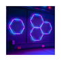 Komplet sæt med 3 Hexagon RGBIC felter, 50W, inkl. Bluetooth-controller og strømforsyning. Perfekt til at skabe dynamisk og farverig belysning.