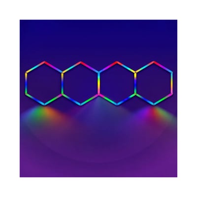 Komplet sæt med Hexagon RGBIC paneler, der giver et unikt lysshow. Inkluderer bluetooth controller og strømforsyning.