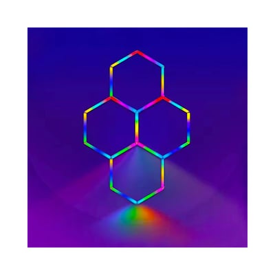 Komplet sæt med fire RGBIC Hexagon felter og Bluetooth controller. Perfekt til at skabe dynamisk og farverig belysning i ethvert rum.