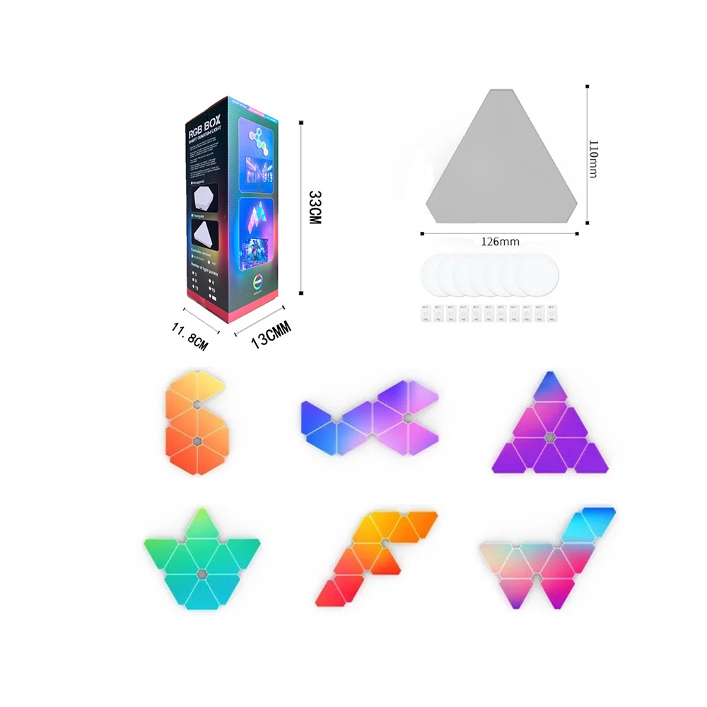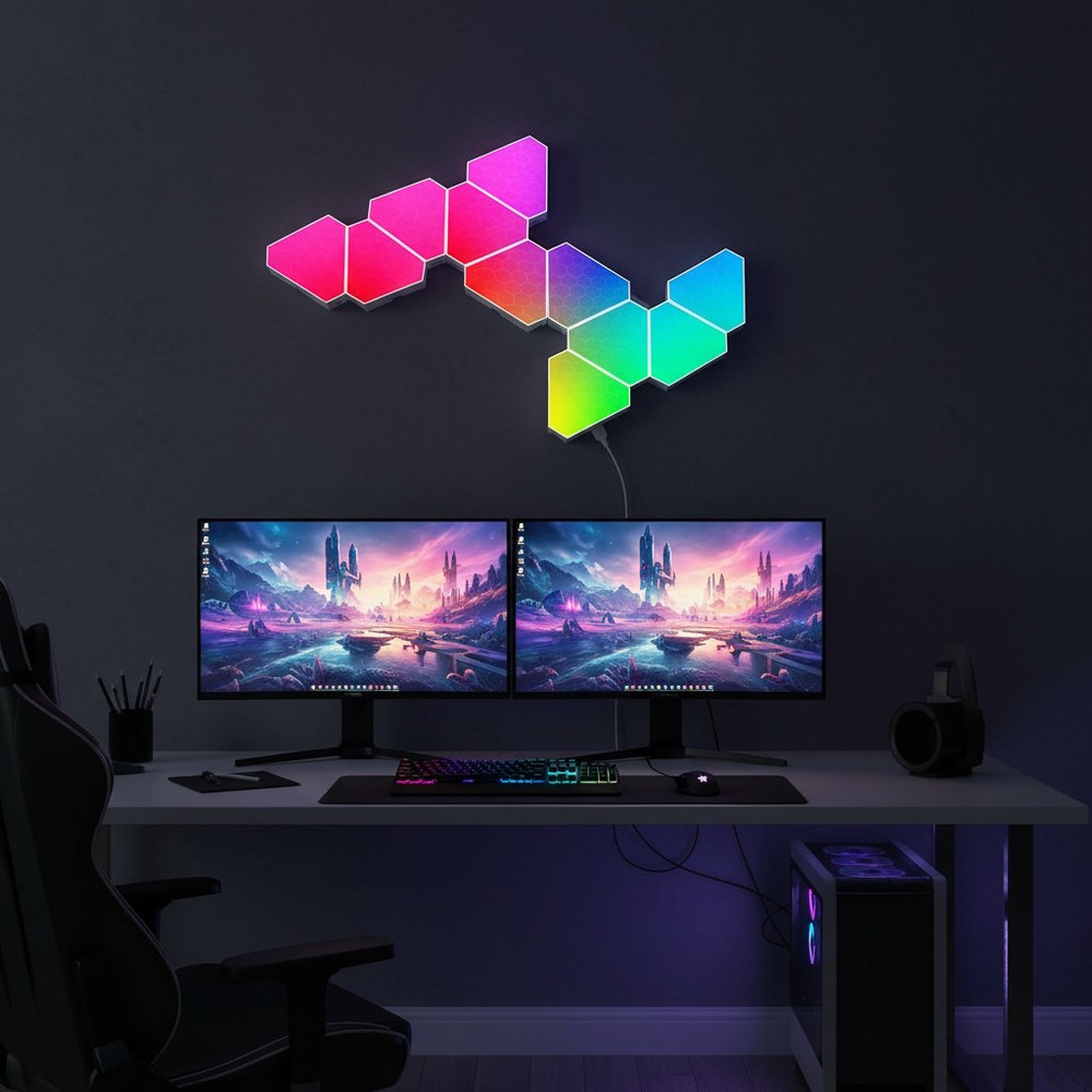 Disse hexagon tri panels er nemme at montere og giver dig mulighed for at designe dit eget unikke lyskunstværk på væggen. Slip kreativiteten løs og forvandl ethvert rum med et personligt og farverigt lysshow.