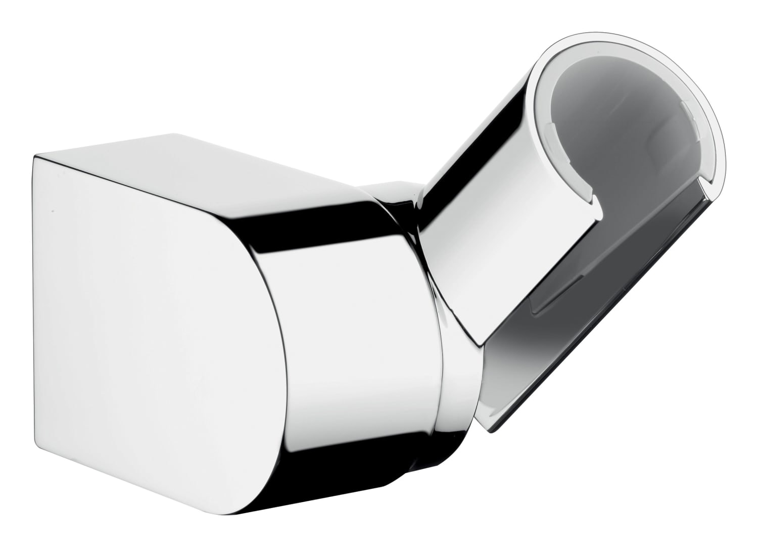 Justerbar bruserholder i metal med blank krom-overflade. Passer til slanger med konisk omløber.