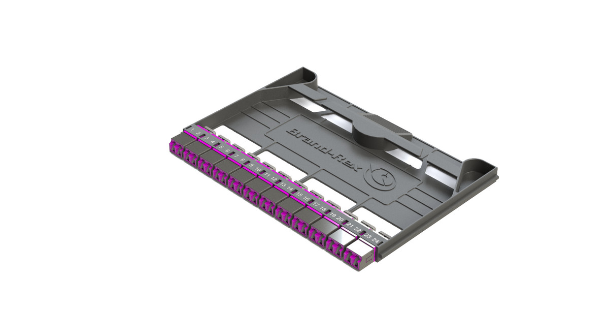 - HDXOCLCOM424 = HI-DEX Multimode OM3 åben kassette med 24 LC heather Violet duplex adapter - grå kasette.