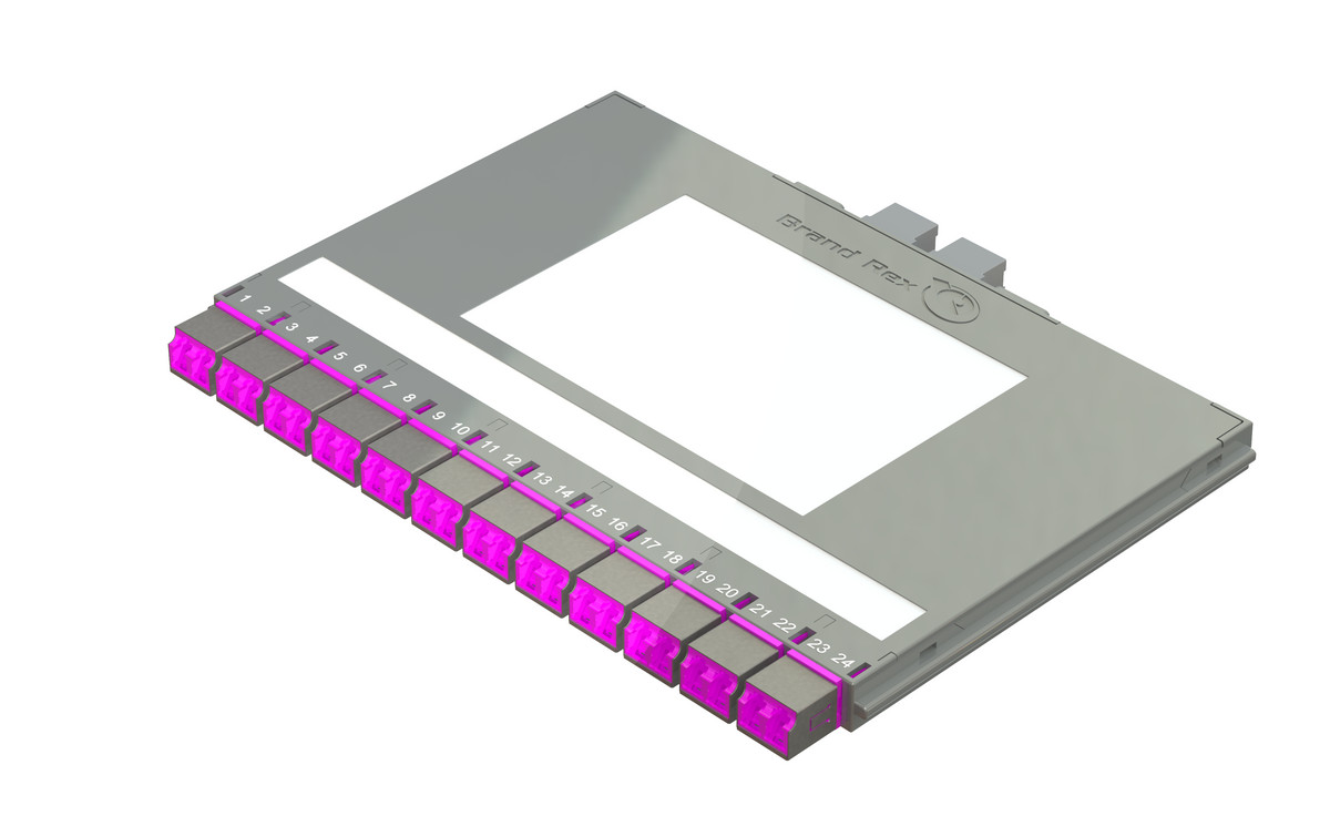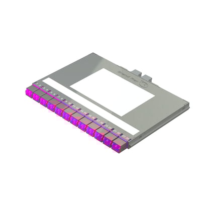 HI-DEX high-end fiberløsning med bredt tilbehørsprogram. Lukket kassette med 24 OM4 fiber MTP-til-LC, hvilket giver en fiber tæthed på 144 LC fibre på 1 højde enhed.
