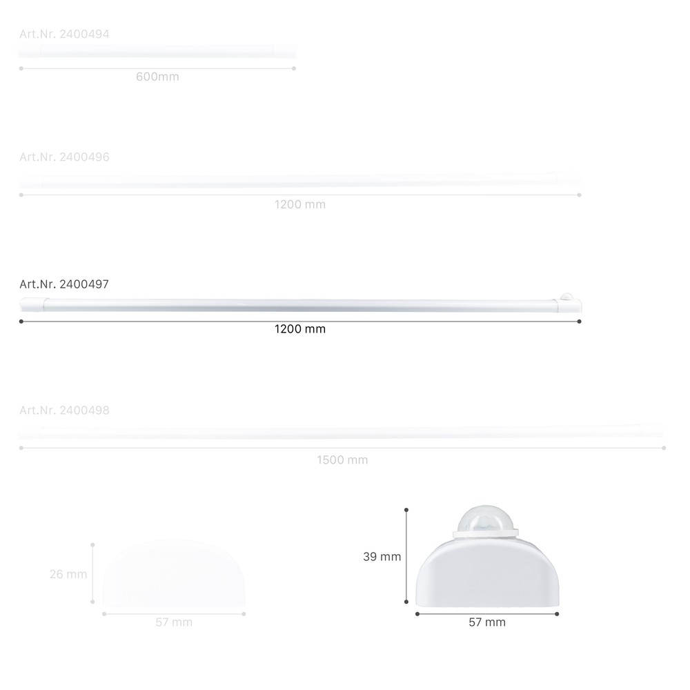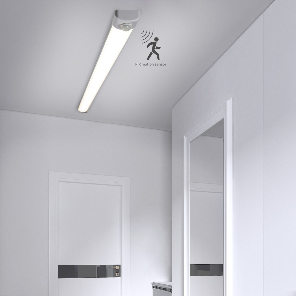 Kraftfuldt LED armatur med 36W, 4000K, IP40 og integreret sensor. 120 cm længde.