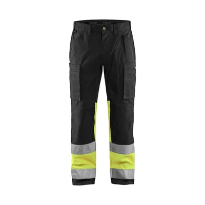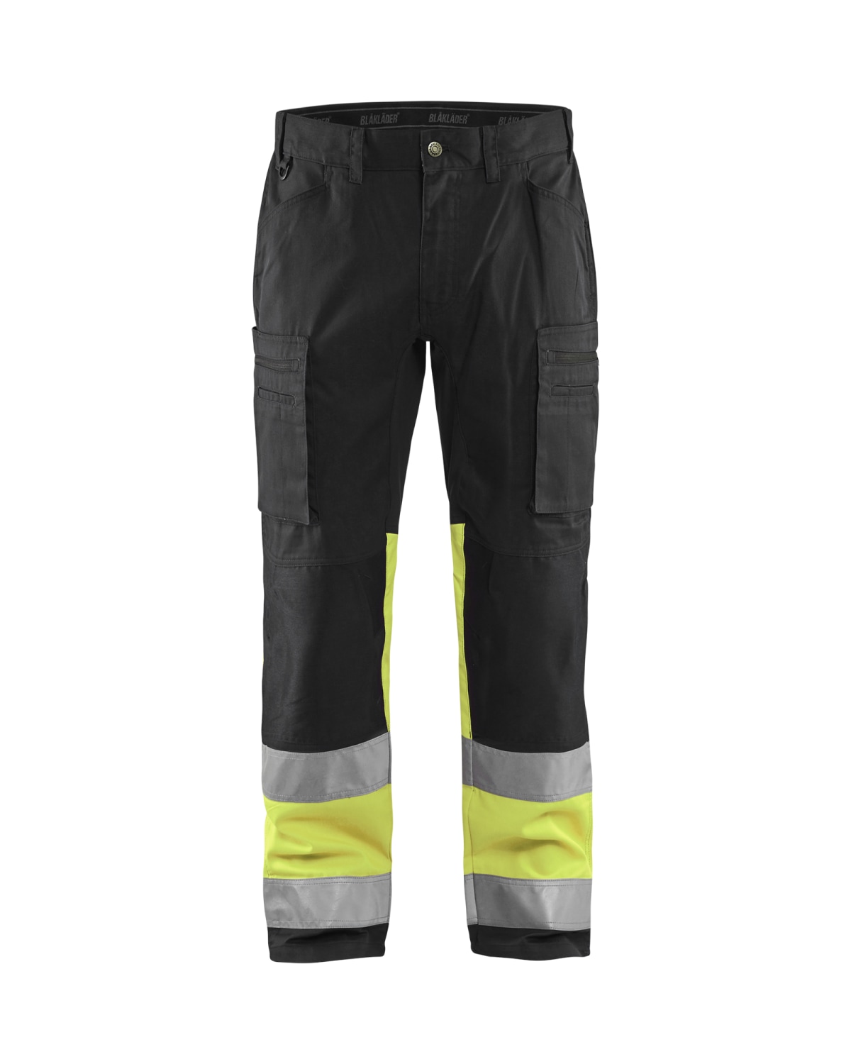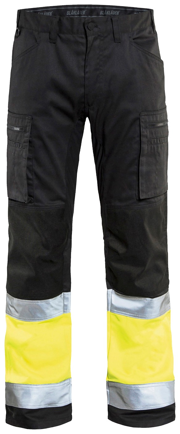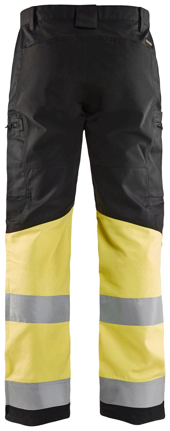 Slidstærke high-vis bukser fra Blåkläder Workwear i sort og high-vis gul. Perfekt til arbejde, hvor synlighed er vigtig.