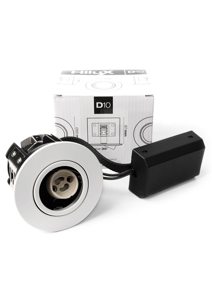 Med en indbygningshøjde på kun 65 mm og et udskæringshul på 76 mm passer HiluX D10 til de fleste GU10 lyskilder på markedet. Den slankere konstruktion sikrer, at spotlyset sidder tættere mod loftet, hvilket giver et mere diskret og stilrent udseende.