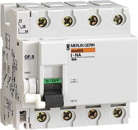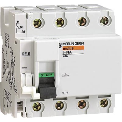 Hjælpekontakt til OFS (ID) fra Schneider Electric. Tilbehør til fejlstrømsafbrydere for optimal installation.