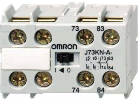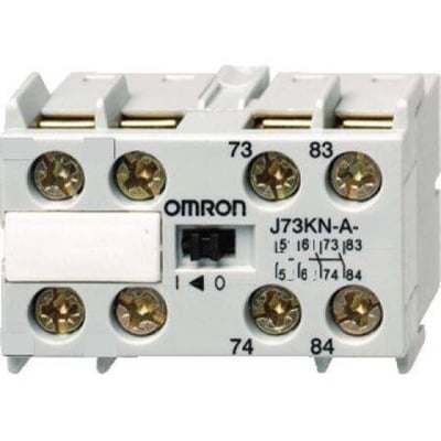 4-polede hjælpekontakter (4M) designet til brug med J7KNA-AR relæer for udvidet funktionalitet og styring.