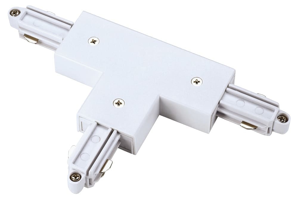 Dette T-stykke er designet til at give en fleksibel strømforsyningsmulighed i et 1-faset monteringsskinnesystem. Med en jordleder placeret til venstre sikres korrekt installation og funktionalitet. Produktet er udført i robust plast og har en mat-hvid finish, der passer diskret ind i de fleste miljøer.