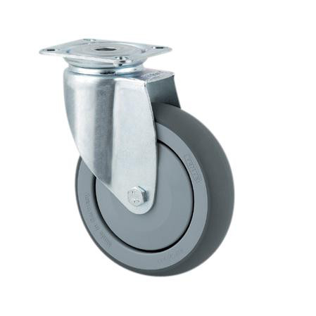 Drejeligt hjul fra Tente med en diameter på 100mm, plademontering og en belastningsevne på 100kg. Ideelt til diverse industrielle anvendelser.