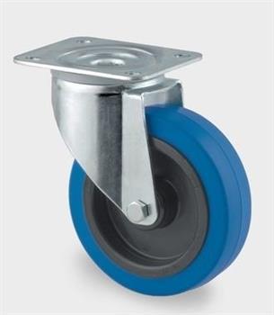 Drejeligt hjul fra Tente med en diameter på 100mm, pladebefæstigelse og en belastningsevne på 160kg. Ideelt til diverse industrielle applikationer.