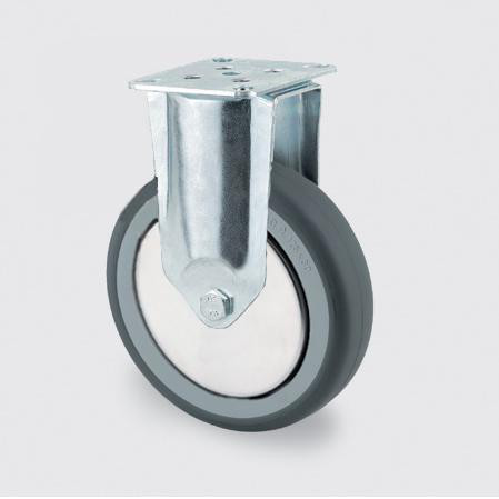 Fast hjul fra Tente med en diameter på 75mm, stål gaffel, og hjulbane af grå termoplastisk gummi. Ideel til diverse anvendelser.