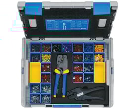 HK 60/22 med presseindsatssæt D 22 fra Klauke. Stort krympeområde op til 300 mm2 og slankt pressehoved. 2-trins-hydraulik med hurtigt fremløb og automatisk retur.