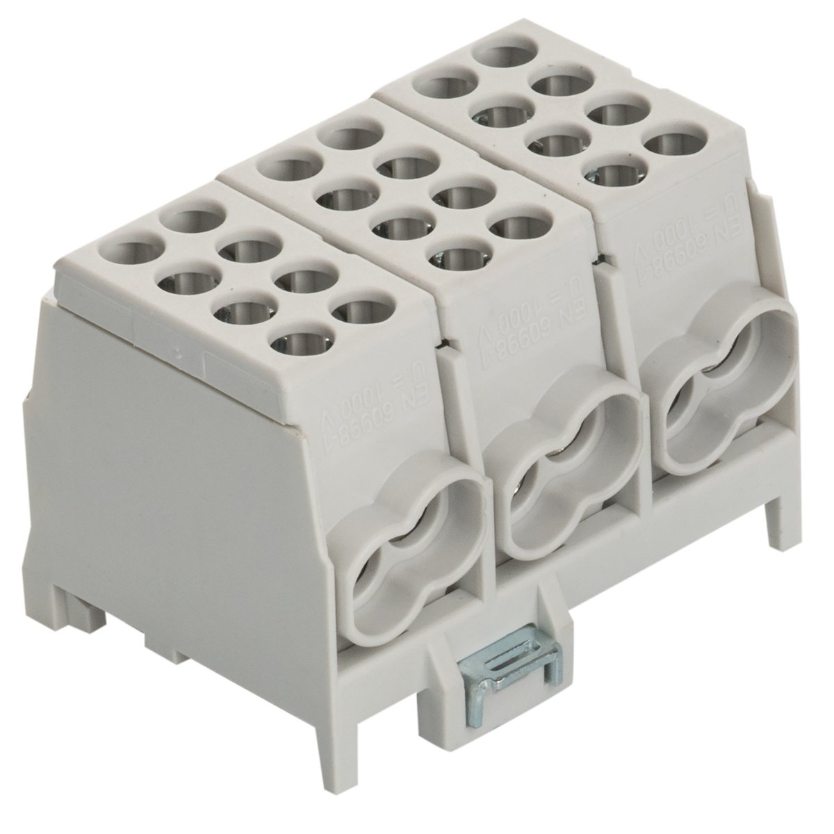 HLAK klemmer fra Pollmann med 2 skruer pr. indgang for optimal forbindelse. 3x grå med 2 x 25mm² indgange og 2 x 25mm² udgange. Til CU massiv leder 1,5-25mm² / 1,5-16mm² blød leder.