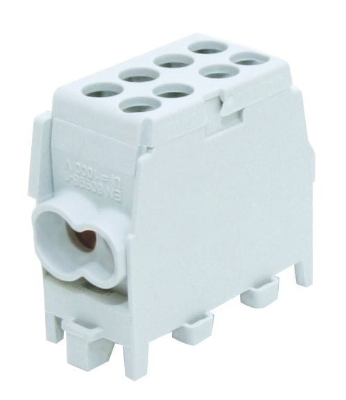 HLAK klemmer fra Pollmann med 2 skruer pr. indgang for optimal forbindelse. 1x grå 1x35mm²/1x25mm² indgang - 1x35mm²/1x25mm² udgang. CU massiv leder 10-35mm² / 1,5-25mm².